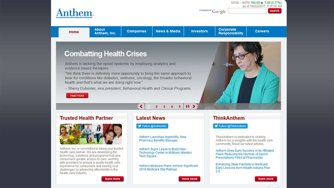 Previously known as Wellpoint, Anthem is a global provider of healthcare benefits and services for consumers.