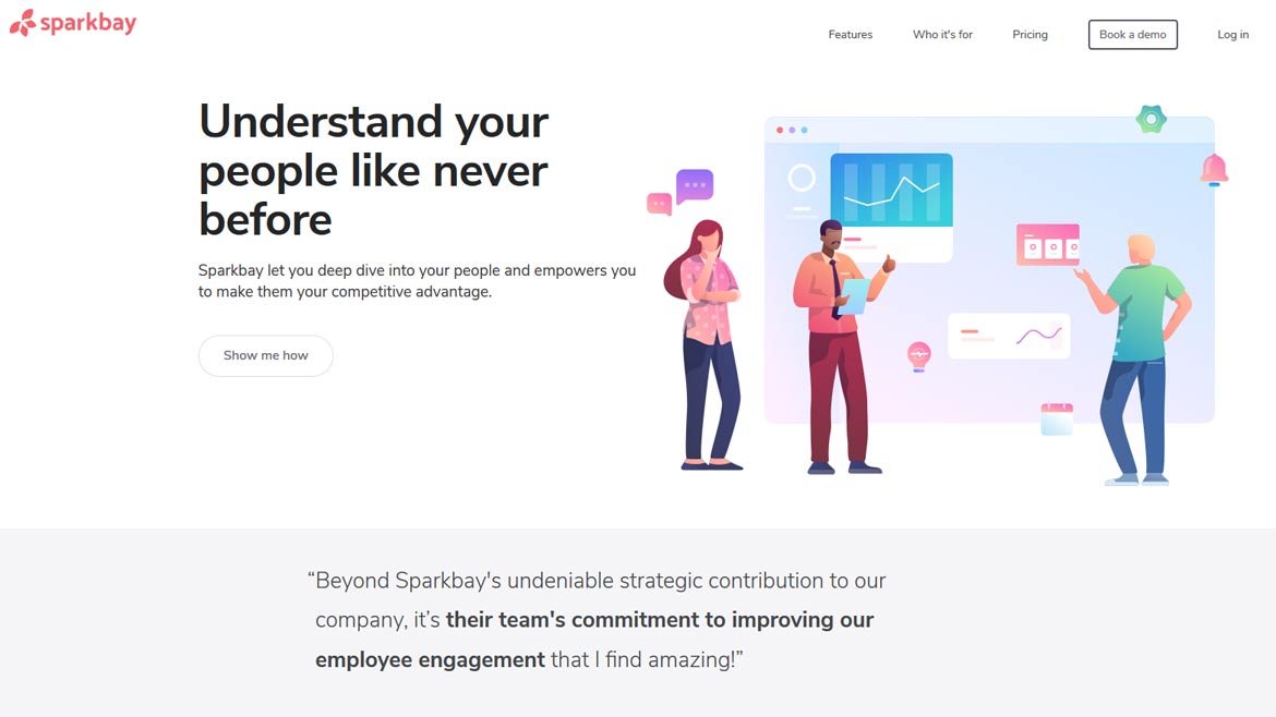 Sparkbay is an employee engagement platform that enables companies to quantify and qualify a company workforce through surveys and feedback. With Sparkbay, organizations can increase the speed and ability to identify areas for improvement. By identifying problem areas early, actions can be taken to formulate plans before negative impact is felt by the business.