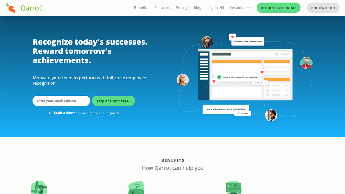 Qarrot is a rewards and recognition platform that is built to increase engagement and motivation for employees in an organization. By introducing gamification, recognition, and increased communication across an organization, Qarrot helps build company cultures that look to increase overall performance across the organization.
